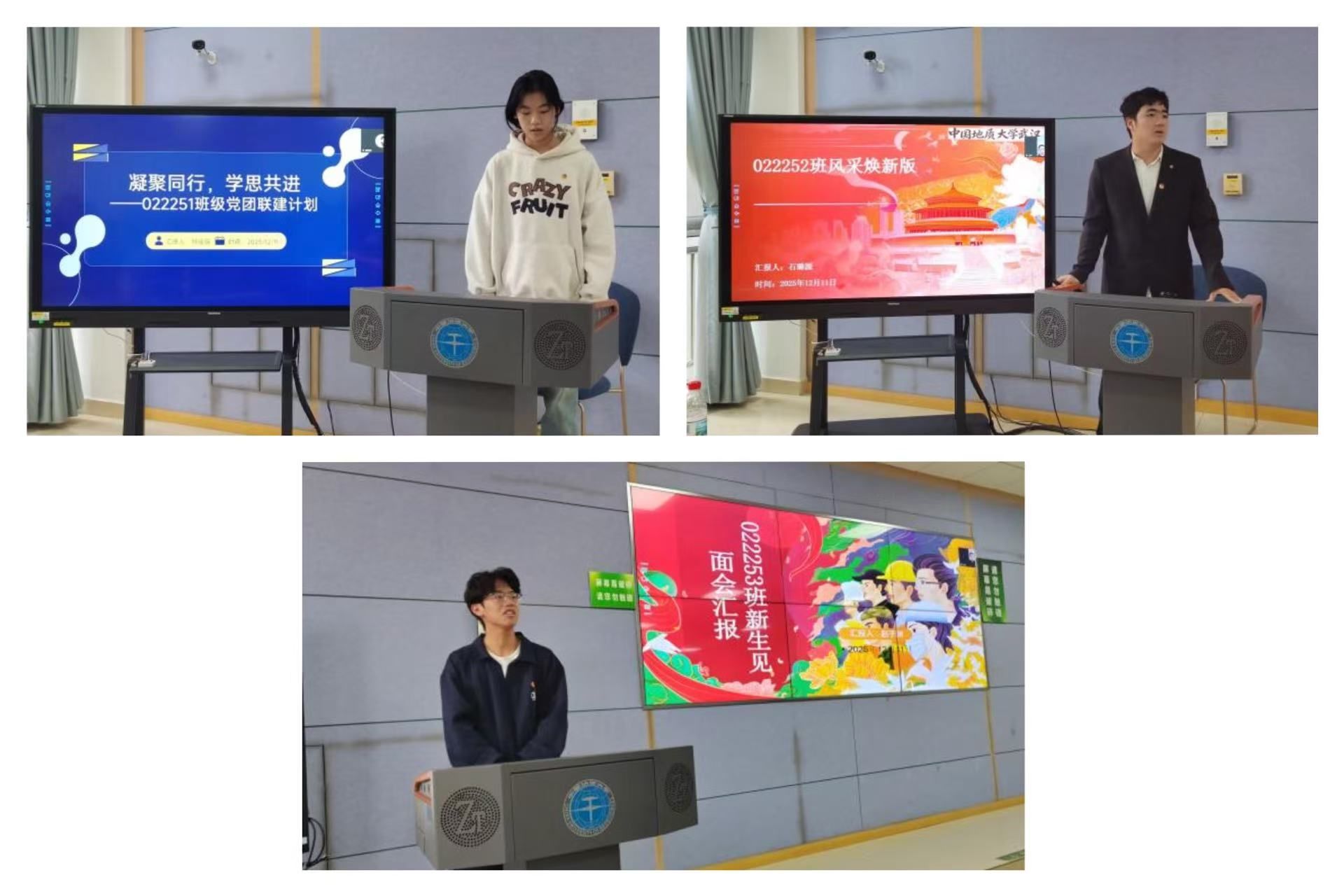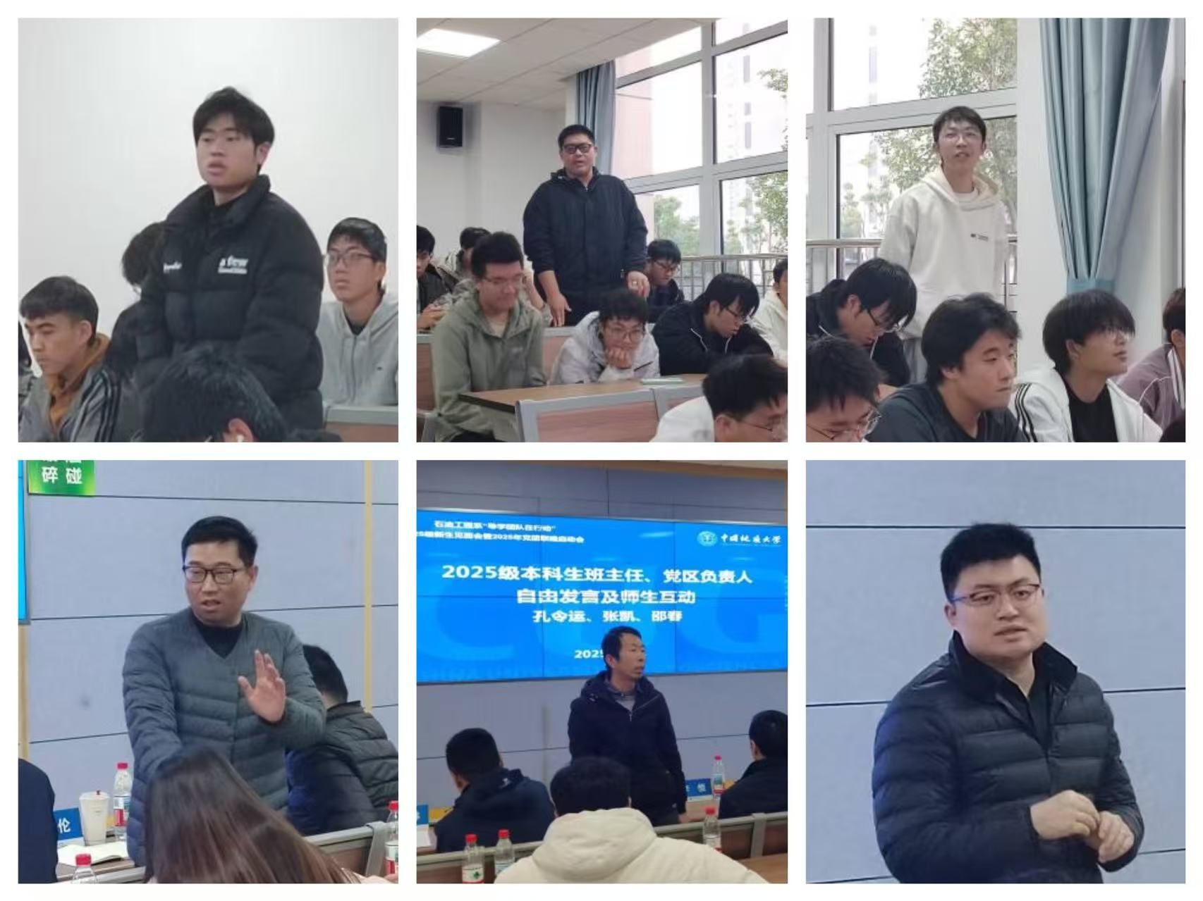 2025级石油工程班级团支书介绍和党团联建方案刘瑶瑶、石璐源、赵子渊三个班级团支书分别从成员构成、学习情况、班级活动和班级文化等方面介绍班级基本情况,并从计划制定、联系帮扶、主题联学、榜样示范、学风塑造与志愿服务讲解结对领航“六个一”工程建设内容