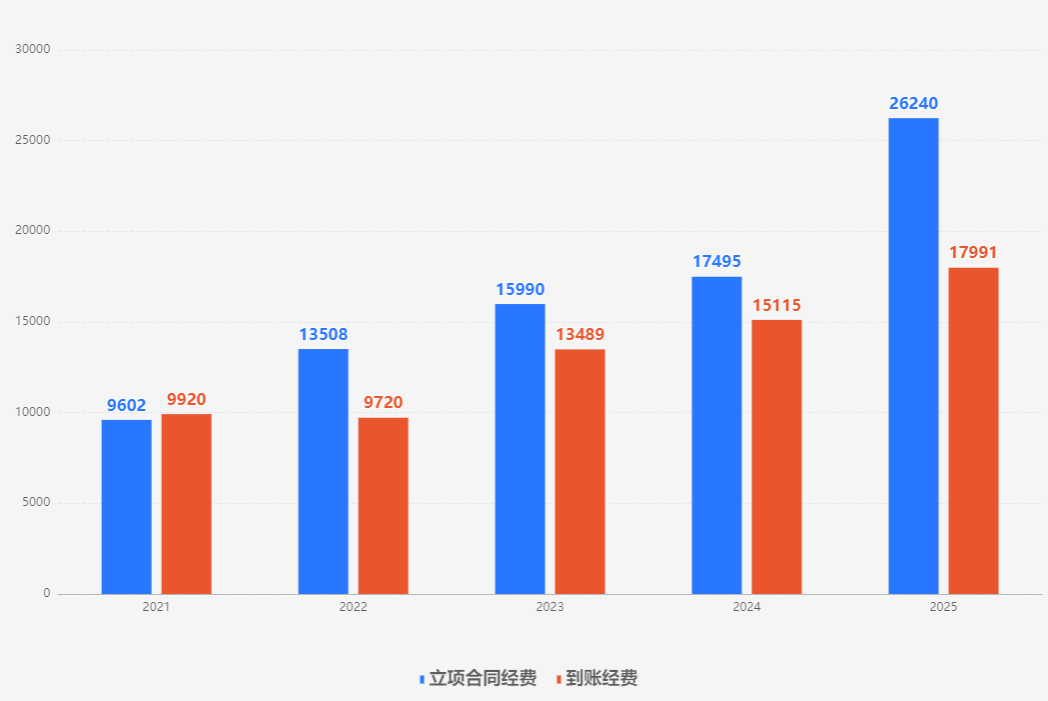 古天乐太阳集团城2021年-2025年立项合同经费、到账经费情况