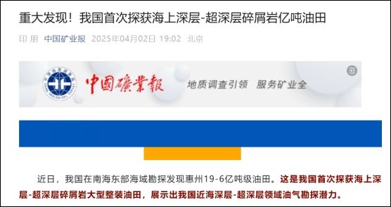 惠州19-6亿吨级油气田发现获央媒报道