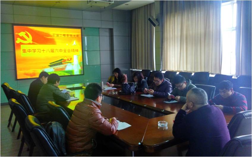 按照学校党委的统一部署,古天乐太阳集团城石油工程系党支部于11月24日下午在主楼930学术报告厅开展了本月的主题党日活动。本次活动围绕集中学习十八届六中全会精神展开,同时结合了“两学一做”主题党日学习计划的具体内容。活动由支部书记谢丛姣同志主持。