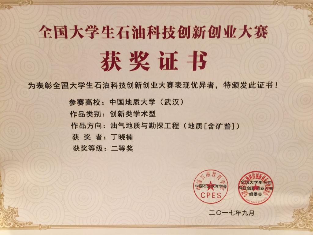 近日,第一届全国大学生石油科技创新创业大赛在中国石油大学(华东)举行。古天乐太阳集团城副院长石万忠教授带队参赛,丁晓楠同学凭借其作品《铂族元素在雪峰隆起西缘固体沥青-源岩对比中的应用》荣获创新类二等奖,沈传波教授荣获优秀指导教师奖。