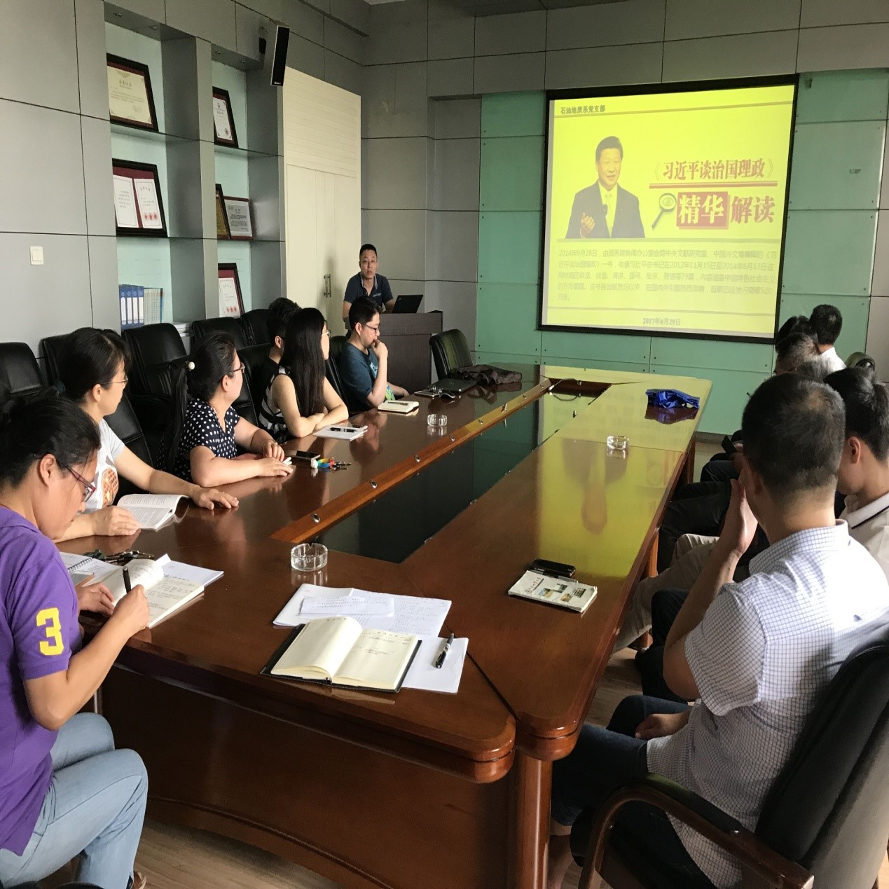 石油地质系支部观看学习了中央电视台栏目“好书推荐:《习近平谈治国理政》”的新闻视频,并由支部书记沈传波同志带领大家解读了《问责条例》实施办法,结合学习,各党员同志还开展了热烈的讨论,大家一致认为:《习近平谈治国理政》一书涵盖了中国特色社会主义的方方面面,作为一名基层党员,在工作岗位上应牢记共产党员的宗旨和义务,充分发挥党员的先锋模范作用,完成好自己的职责,做到爱岗敬业、扎实工作,争做工作岗位的模范,在政治坚定、遵规守纪、积极作为和团结奉献等方面做出表率,实现自己的人生价值。
