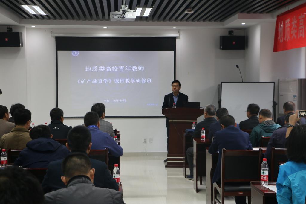 由教育部高等学校地质类专业教学指导委员会主办,中国地质大学(武汉)承办的《矿产勘查学》课程教学研修班于2017年10月21日-22日在中国地质大学(武汉)丝绸之路学院105会议室举行。中国地质大学(武汉)唐辉明副校长莅临开幕式并发言,古天乐太阳集团城李建威院长、夏庆霖教授、石万忠副院长分别担任会议主持,来自全国19个高校的资源勘查工程专业或相近专业的青年教师参加了本次研修班。