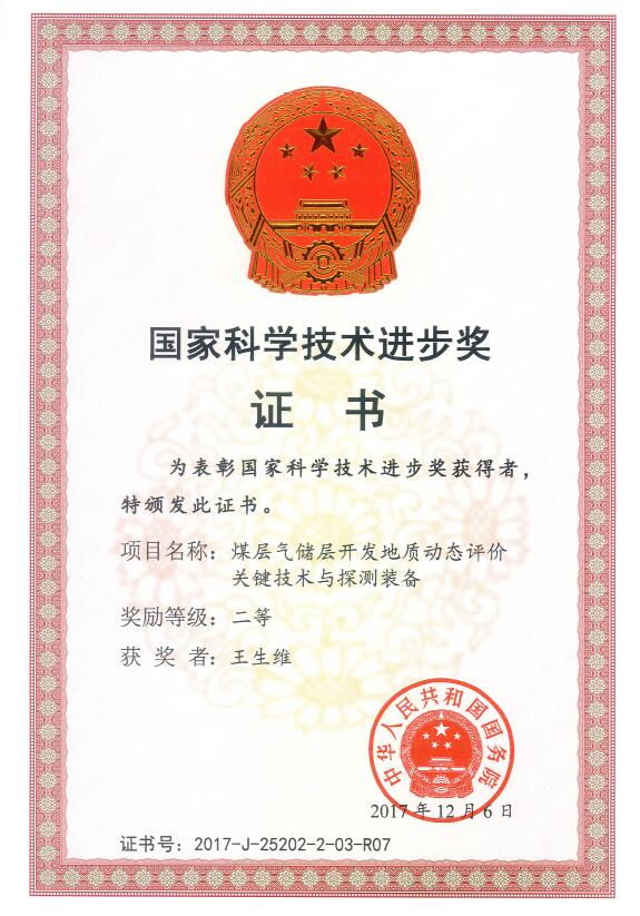 2018年 1 月 8 日,2017 年度国家科学技术奖励大会在北京隆重举行。我院王生维教授与中国矿业大学等单位合作完成的“煤层气储层开发地质动态评价关键技术与探测装备”项目获得国家科技进步二等奖。