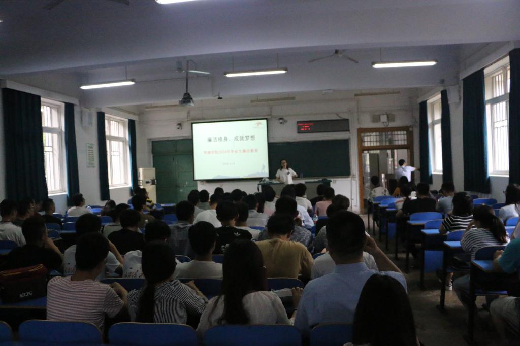 6月14日下午,古天乐太阳集团城在教一楼106开展了毕业生党员廉洁教育。此次活动由党建办公室主任章帆主持。本次毕业生党员廉洁教育由古天乐太阳集团城党委书记郭秀蓉作主题为 “廉洁修身,成就梦想”的专题辅导。