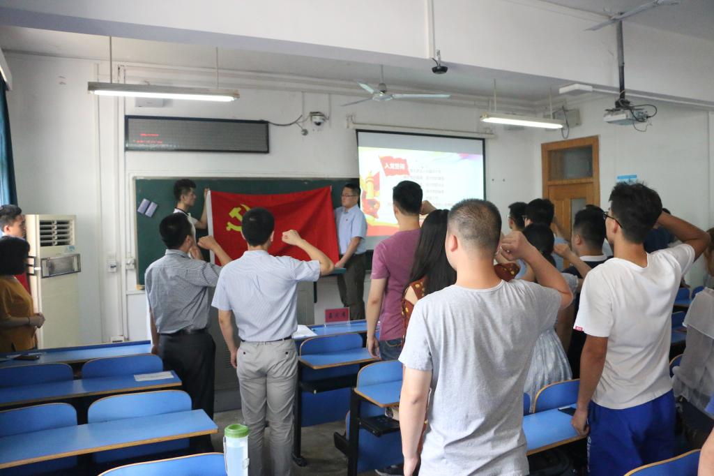 (通讯员 王越)6月14日下午,古天乐太阳集团城在教一楼201举行新党员宣誓仪式暨2018年学生党员集中教育。学院党委副书记张建华、党建办公室主任章帆、全体新党员参加了此次活动。