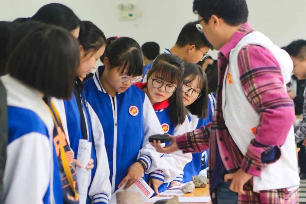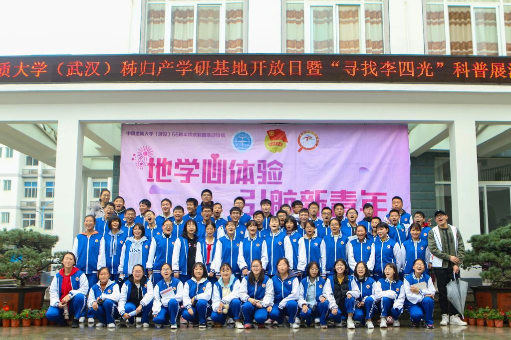 11月9日到11日,为进一步做好地学科普,传播地学知识,学院将地学科普文化展演活动的现场搬到秭归产学研实习基地,来自秭归县一中、二中的1200余名师生走进秭归基地,分批次参观了岩石园、地质灾害模型、矿石标本展、沉积岩标本展、地质风貌摄影作品展、精品矿物标本展、珠宝玉石展、恐龙模型展、地质年代阶梯等9个展位的展品。
