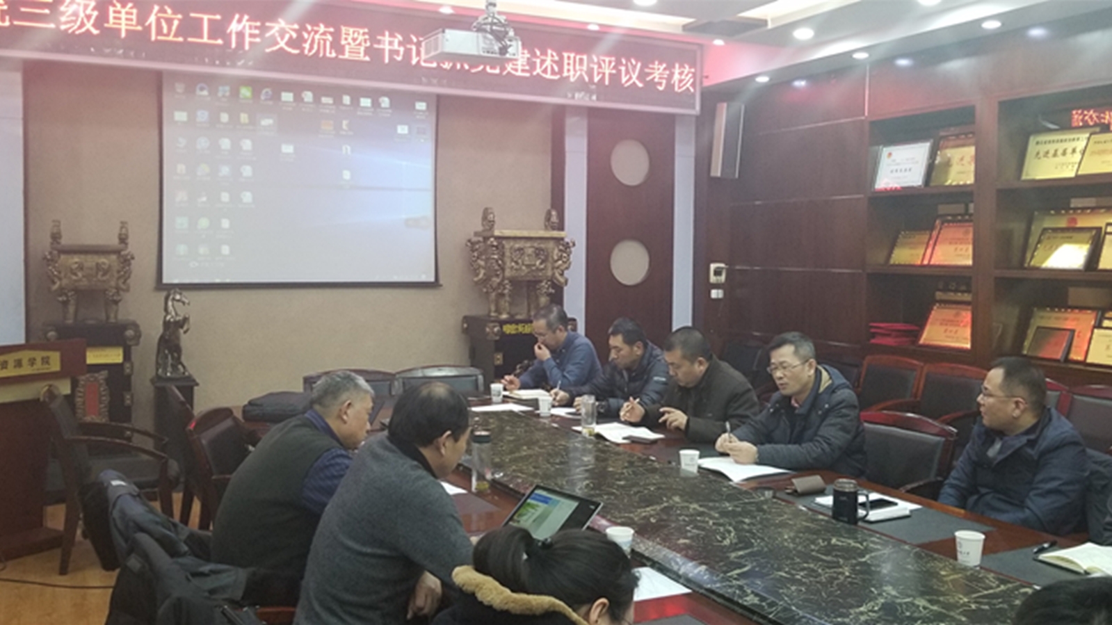 1月4日下午,古天乐太阳集团城召开2018年度三级单位工作总结交流暨教工党支部书记抓基层党建工作述职评议大会,学院党政领导班子、各三级单位行政班子及各教工党支部支委成员参加了会议。会议由学院党委书记李宇凯主持。