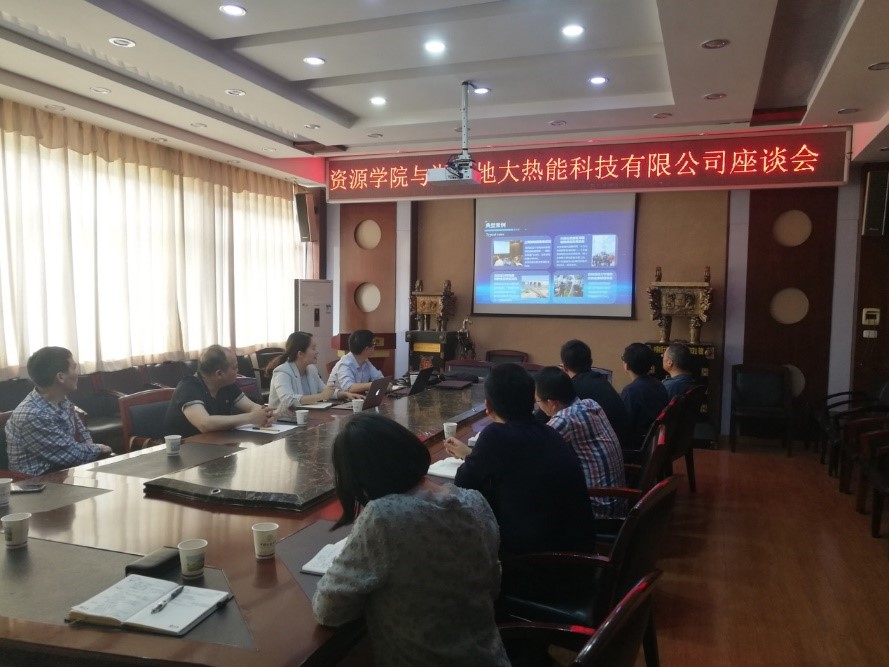 王昌文首先介绍了湖北地大热能科技有限公司的发展历程、业务范围及优势,并表达了与高校开展进一步合作的意向。