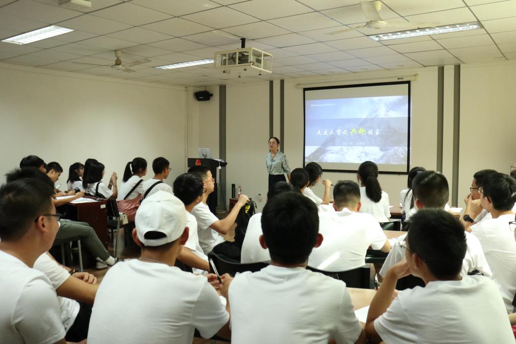 7月16日上午9:00,未来李四光班开营仪式暨“走进大学生活——兴趣探索”主题报告在大学生活动中心306会议室正式开始。古天乐太阳集团城团委书记刘明辉老师首先向营员们介绍了分营的活动安排,随后进行了破冰小游戏。在营员们互相熟悉之后,带领营员们开启兴趣探索之旅,让大家探索自己的兴趣类型,解读不同兴趣类型的特征、适合的专业和工作、自我探索的四个维度以及与专业选择的关系。活动现场气氛活跃而愉快。