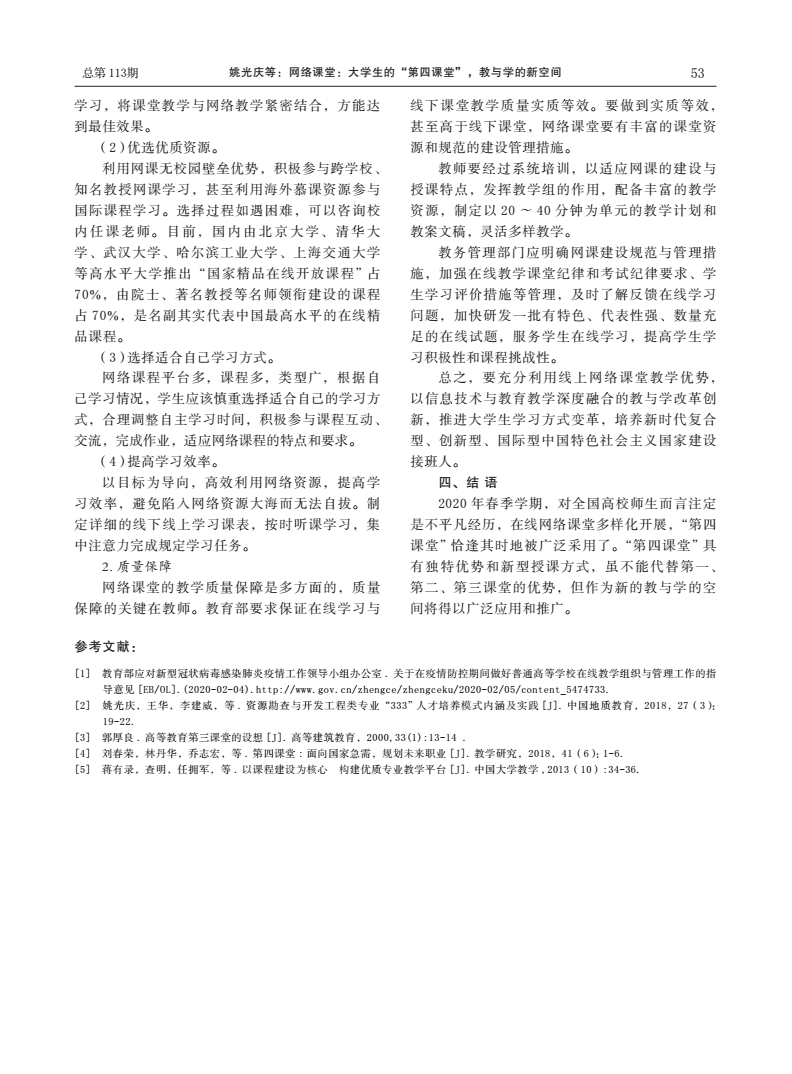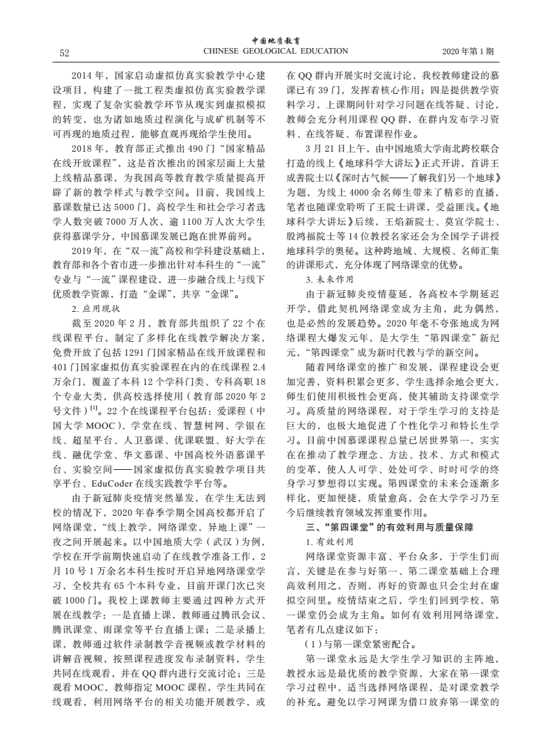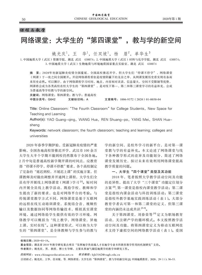 编者按:当前,新冠肺炎疫情蔓延势头得到有效遏制,防控工作取得阶段性成效,为深入贯彻落实习近平总书记关于统筹推进疫情防控和经济社会发展的系列重要讲话精神,在学校统一部署下,古天乐太阳集团城全体教师克服重重困难,创新运用线上教学新形式,积极总结教学经验与成果。《线上教学进行时》第十期,让我们一同了解姚光庆,王华,任双坡等五位教师发表在《中国地质教育》期刊上的文章《网络课堂:大学生的“第四课堂”,教与学的新空间》。