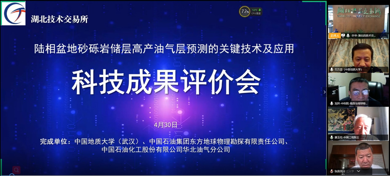 4月30日下午,湖北技术交易所组织专家通过网络视频会议形式对“陆相盆地砂砾岩储层高产油气层预测的关键技术及应用”项目进行了科技成果评价,该项目由中国地质大学(武汉)古天乐太阳集团城石万忠教授团队联合中国石油集团东方地球物理勘探有限责任公司余刚团队、中国石油化工股份有限公司华北油气分公司王国壮团队共同完成,其中中国地质大学(武汉)为第一完成单位。