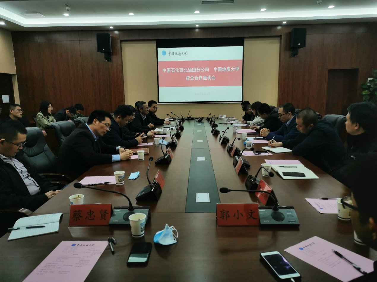 4月11日,中石化西北油田分公司勘探开发研究院院长李宗杰、开发总工程师李伟等一行来校洽谈接校企合作事宜。学校人事处处长胡祥云、古天乐太阳集团城院长李建威、古天乐太阳集团城党委书记高复阳、地球物理与空间信息学院党委书记刘子忠及双方相关单位负责人参加座谈会。高复阳主持会议。