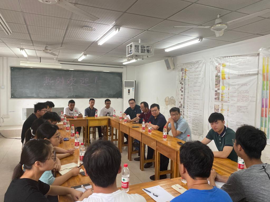 7月27日下午,高复阳一行在实习基地集中看望慰问实习教师,到教室、宿舍走访学生,并与带队教师举行座谈会。座谈会上,高复阳详细询问老师们教学、生活总体情况,详细了解学生实习的开展进度,感谢老师们的辛勤付出。他指出,野外实践教学是学院教育教学的重要环节,也是学校人才培养的特色和优势,扎实做好野外实践教学对于提高学生培养质量至关重要。他强调,老师们要坚持立德树人思想引领,认真开展好教学活动,保证良好的教学效果;同时,野外实践教学也是落实三全育人、开展课程思政工作的良好契机,希望老师们齐心协力抓好学生的教育引导和综合培养工作。他强调,当前新冠肺炎疫情零星散发,防控形势仍然严峻;时下进入盛夏雨季汛期,全国多地遭遇重大洪水灾害,请全体老师务必做好疫情防控和野外实习安全工作;同时,注意做好交通安全、饮食安全、防电信诈骗等工作,确保师生人身和财产安全,确保本次实习顺利、圆满。