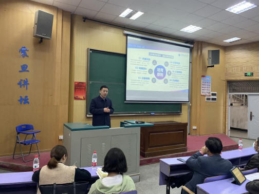 王向东老师从大赛背景、参赛赋能和备赛举措三个方面向同学们介绍了“互联网+”大学生创新创业大赛,强调要结合资源学科优势,探索产业赛道,重点在服务国家战略、推动区域发展、行业影响带动上发力。
