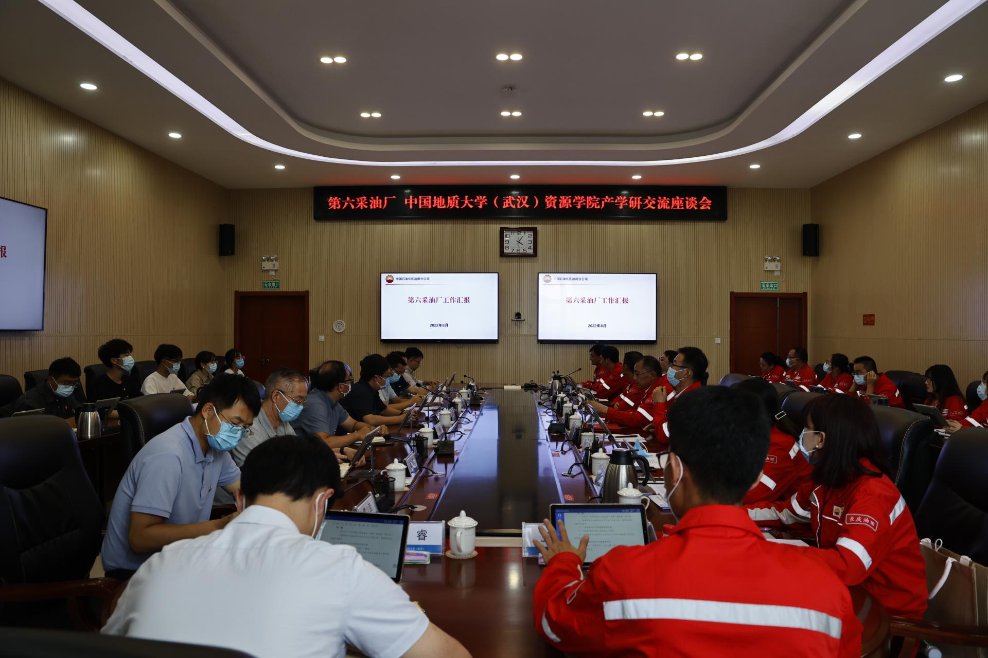 22日下午,双方举行产学研交流座谈会。采油六厂厂长、党委副书记靳文奇,党委书记、工会主席、副厂长李硕,总工程师冯松林,总地质师苟永俊,采油六厂相关部门负责同志和校友代表参加会议。冯松林主持座谈会。