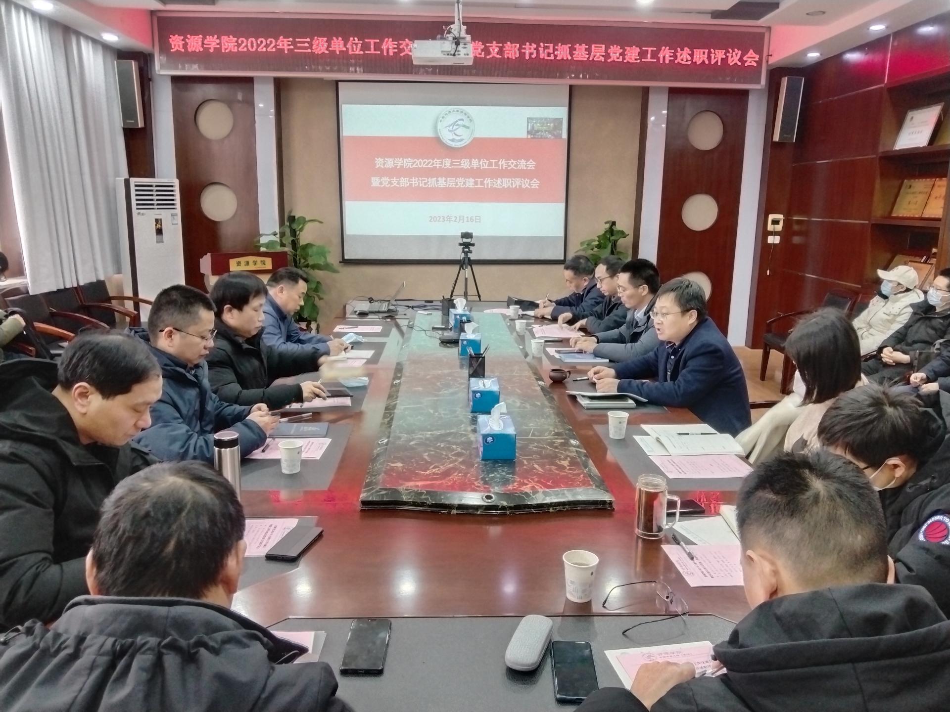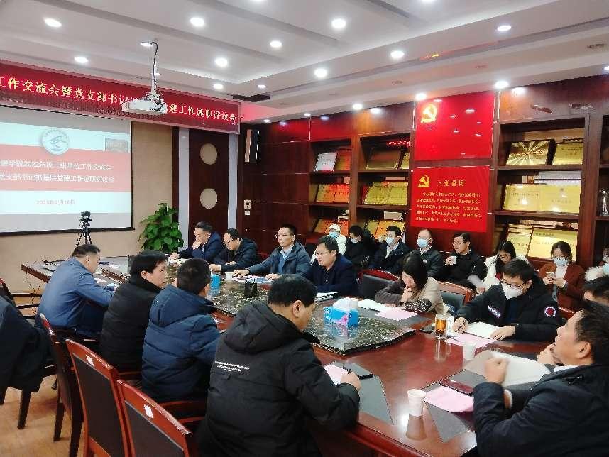 2023年2月16日,古天乐太阳集团城召开2022年度三级单位工作交流会暨教工党支部书记抓基层党建工作述职评议会。党委组织部专职组织员林小艳、学院党政领导班子、三级单位党政班子成员及院直全体人员参加会议。党委书记高复阳主持会议。