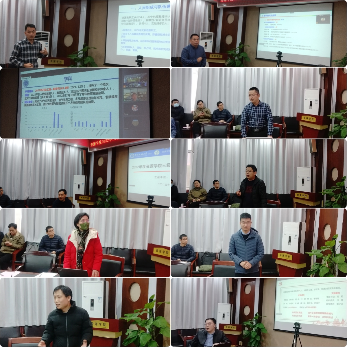 会上,资源科学与工程系、石油地质系、石油工程系、盆地矿产系和资源信息工程系党政负责人分别围绕党建工作亮点特色、人才培养与教育教学、师资队伍建设、学科发展与规划、科技创新与平台建设、成果转化与社会服务、国际交流与合作等方面工作介绍了本单位的基本思路、主要举措、重要进展、工作亮点,并认真梳理了存在的困难和问题、深刻检视了工作中的短板不足,深入交流了好的经验和作法,共同研讨了2023年工作思路举措和主要任务。