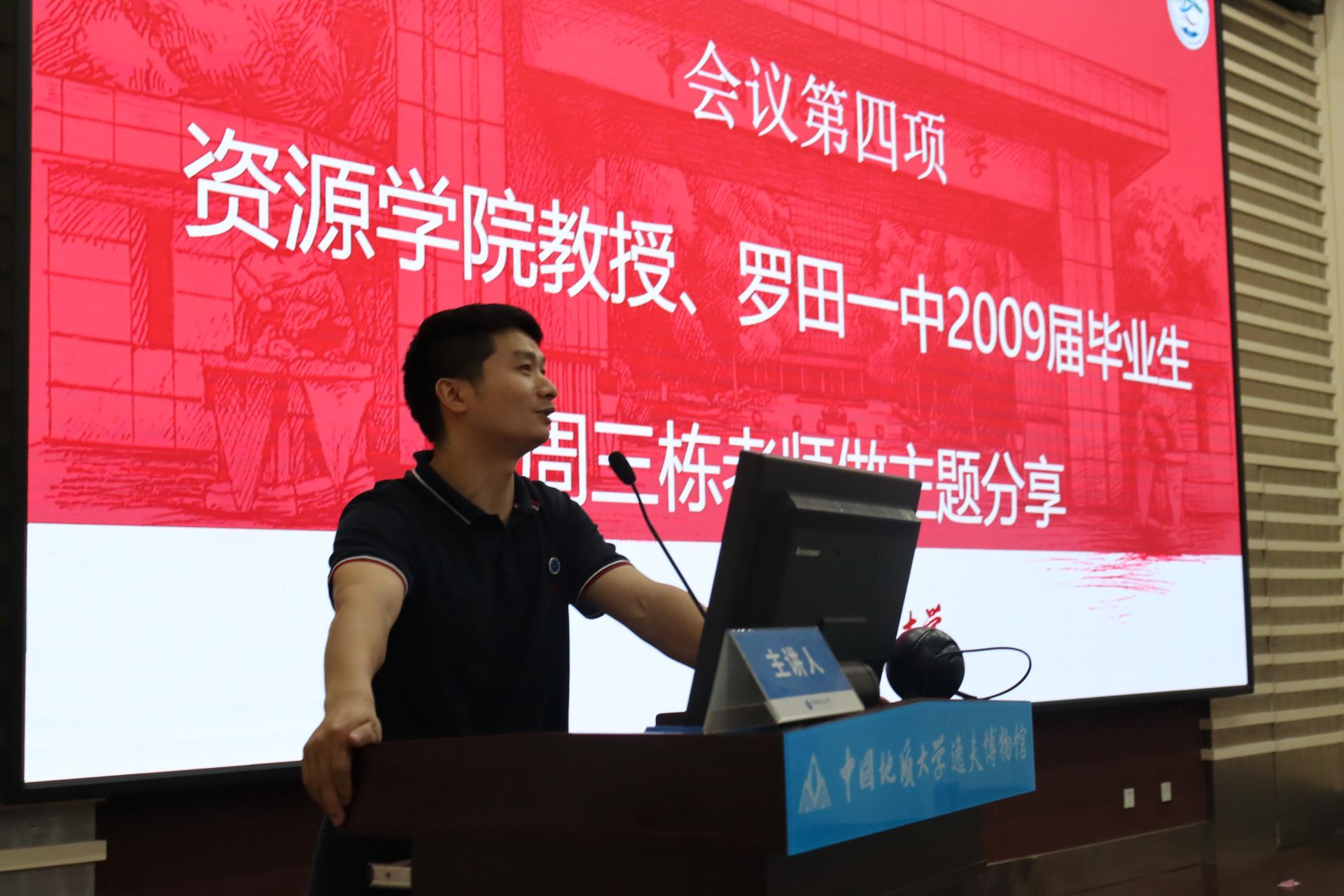古天乐太阳集团城教授、罗田县第一中学2009届毕业生周三栋做《奋进·成长》主题分享。他深情回忆了在罗田一中的求学成长经历,讲述了自身成长的奋斗经历,并寄语罗田一中学弟学妹:要树立远大志向,珍惜时光,不负韶华,在培养兴趣中踏实学习,通过拼搏奋斗实现青春梦想。