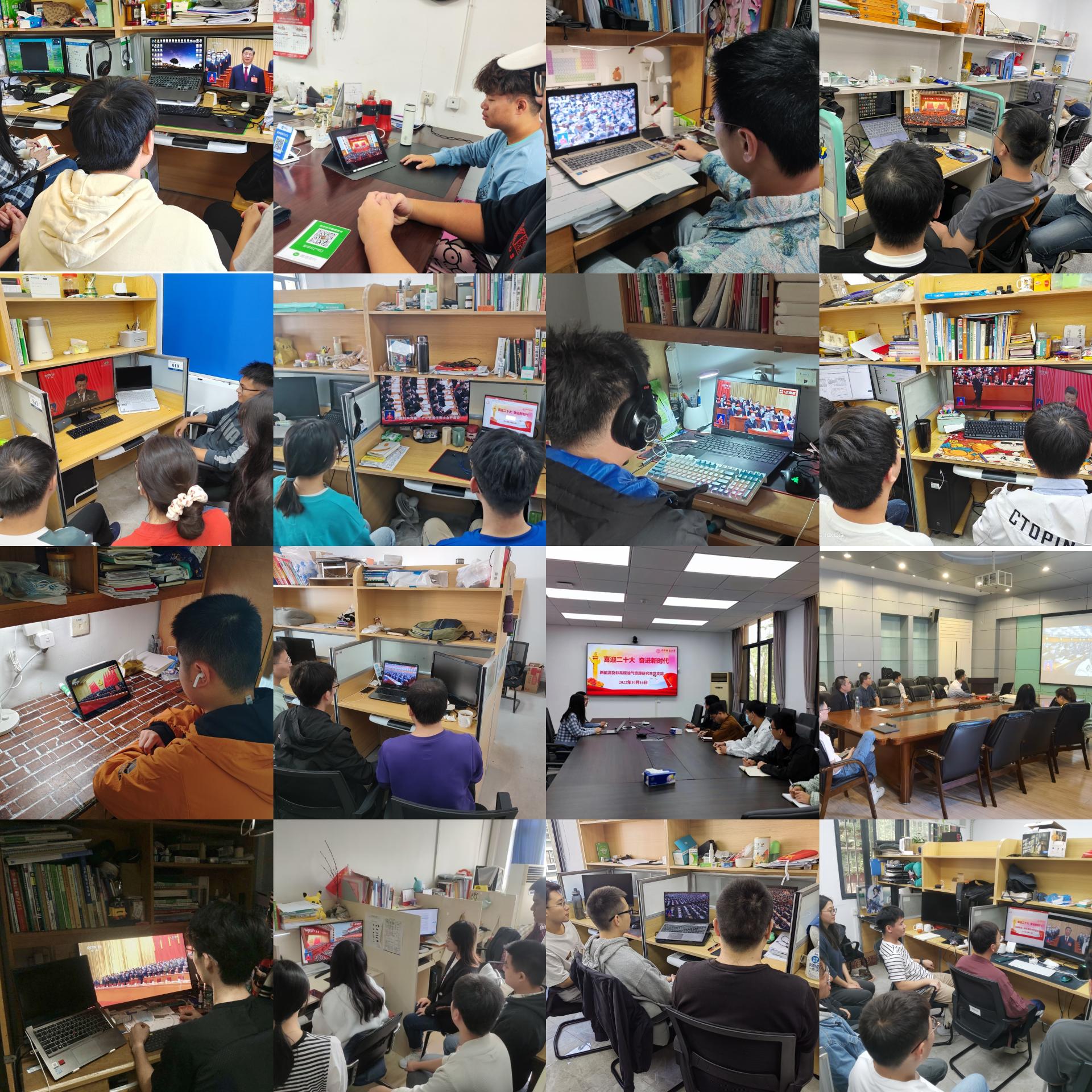根据学院党委统一安排,在古天乐太阳集团城201会议室、教三楼208和56#青年之家设立集中收听收看会场,组织学院党政领导班子,各三级单位党政班子成员,学生党支部书记,学生团支部书记,党团学学生组织成员,教师和学生代表集中收听收看大会盛况;同时,各师生党支部、学生团支部,依托系所属会议室、实验室、工作间、宿舍等组织全体师生小范围集中或自行收听收看大会。