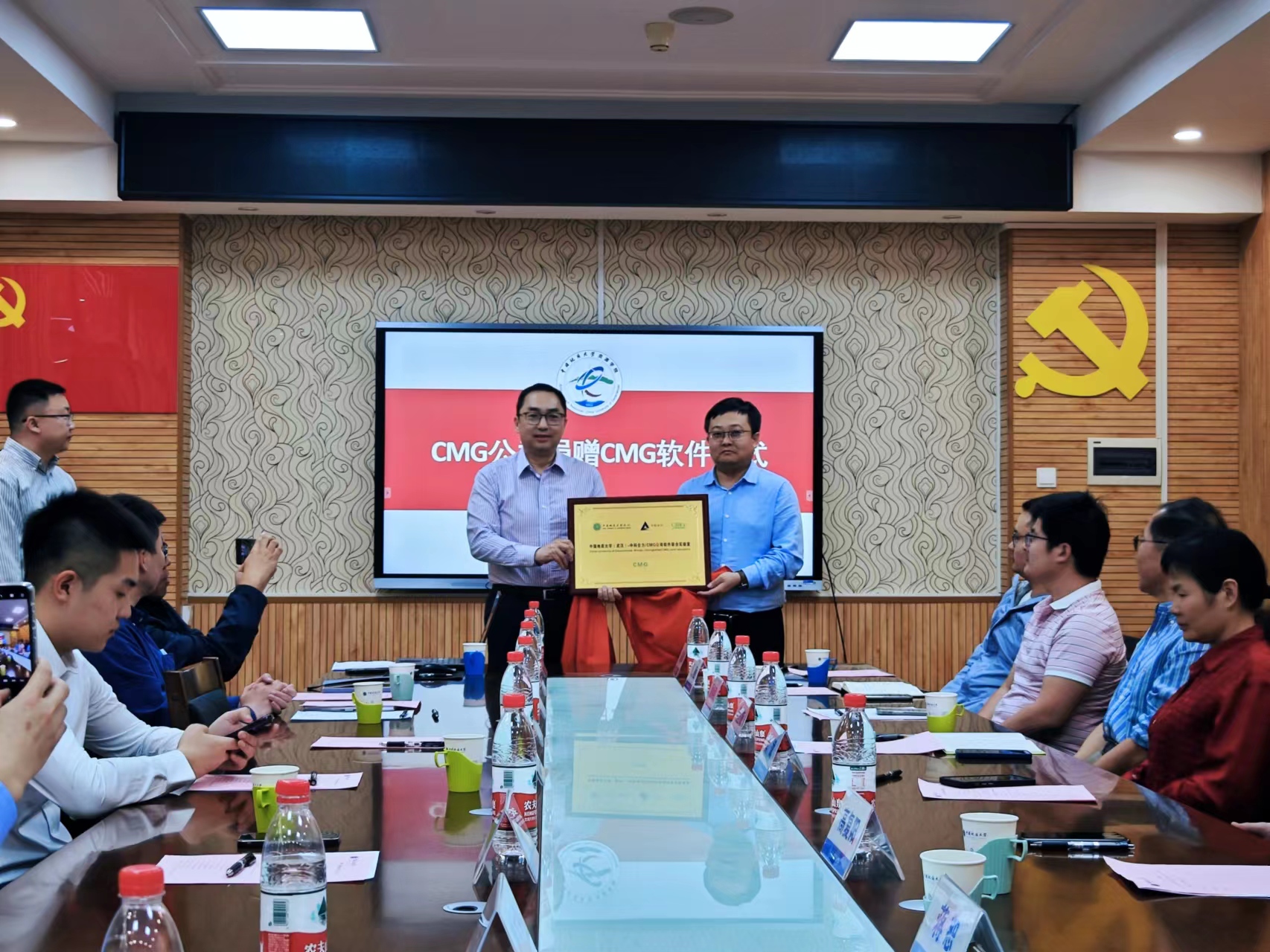 明跃代表CMG公司向学院赠送CMG软件及许可,并与高复阳共同为联合实验室揭牌。双方通过战略合作,发挥产学研资源优势,推动CMG数值模拟技术在学校能源开发领域的科研及教学应用。