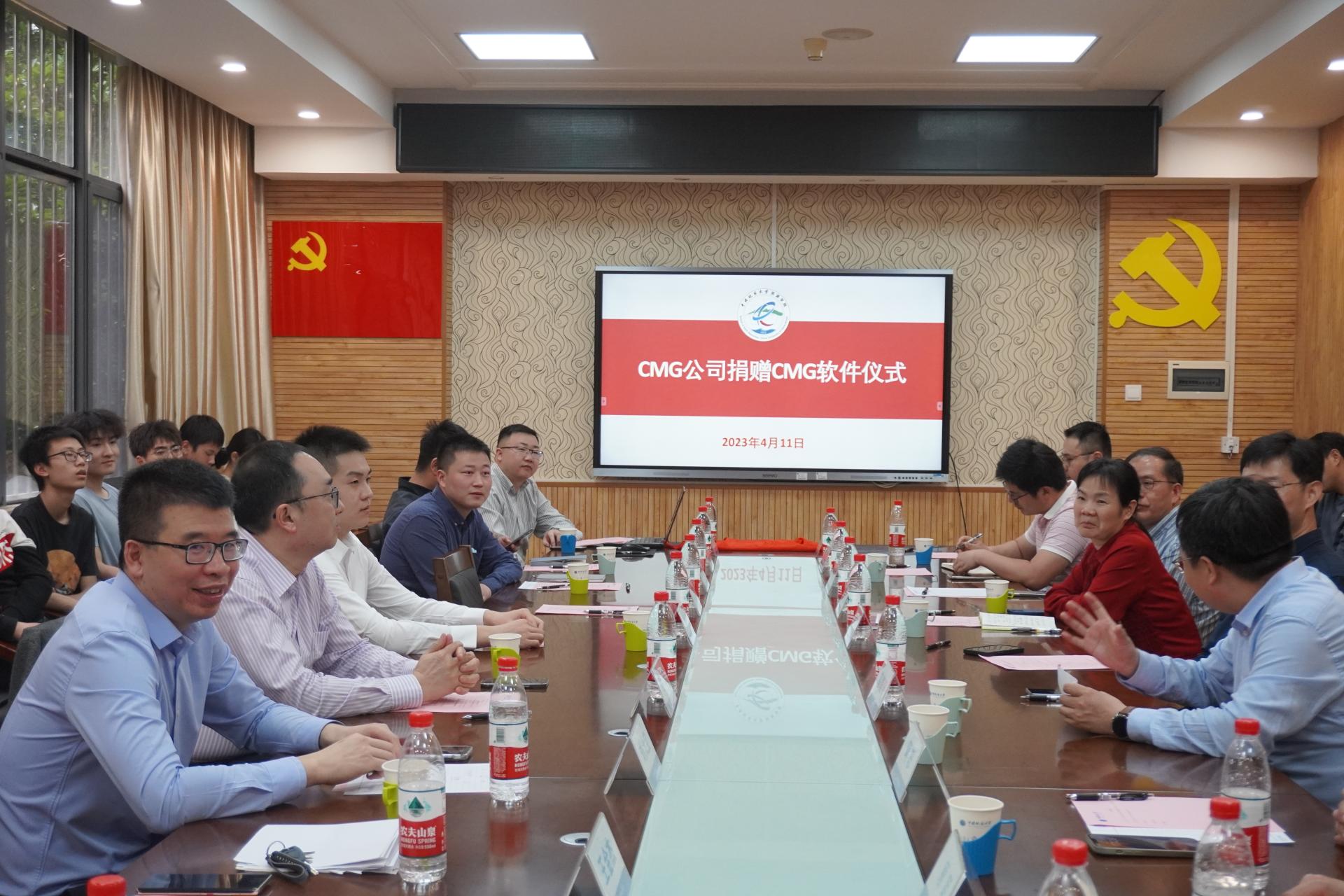 (通讯员 钟志)4月11日下午,北京中科合力/CMG油气藏数值模拟软件捐赠仪式暨CMG软件联合实验室揭牌仪式与产学研合作座谈会在古天乐太阳集团城201会议室举行。北京中科合力科技发展有限责任公司总经理明跃,副总经理、CMG公司中国区首席代表刘大宝、项目经理刘帅,学院党委书记高复阳、油气勘探开发理论与技术湖北省重点实验室主任龚斌教授、构造与油气资源教育部重点实验室主任蒋恕教授、石油工程系党支部书记谢丛姣教授和师生代表参加会议。