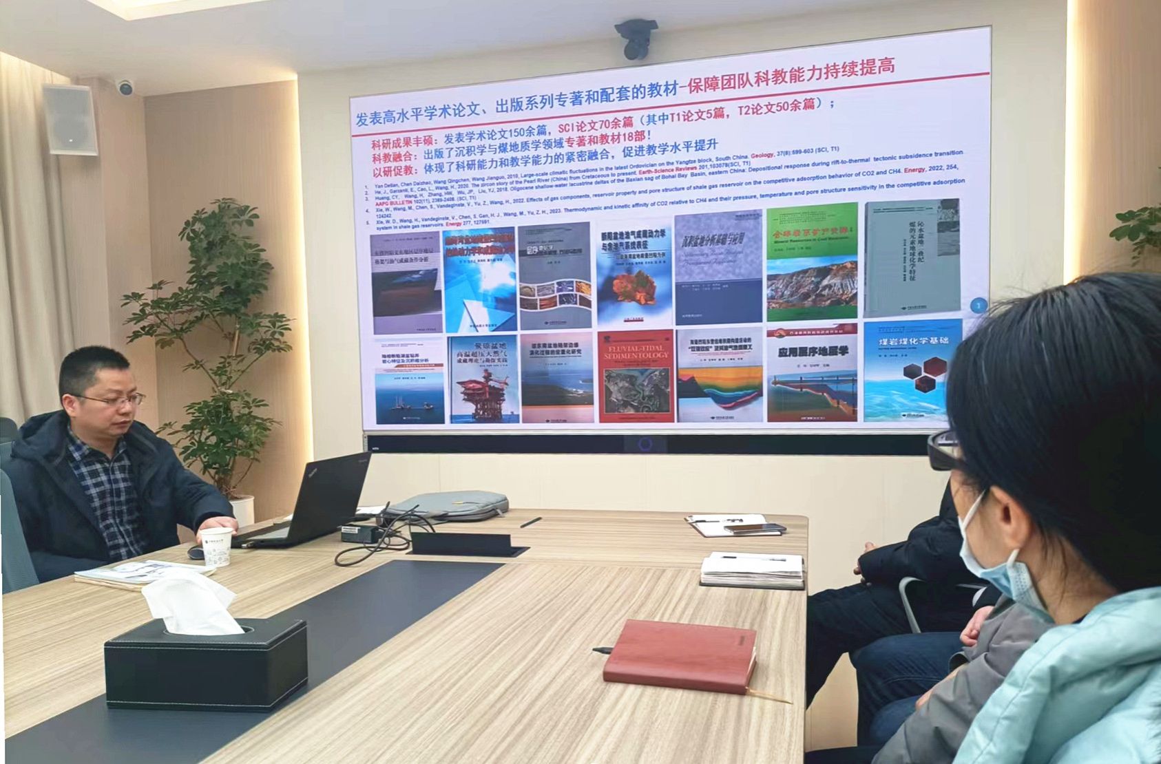与会教师展开热烈讨论,提出了进一步完善的意见和建议。焦养泉教授建议在《煤地质学》课程传统教学内容基础上增加煤炭清洁高效利用和“双碳”目标实现的内容;要突出大课程体系建设,注重理论教学模块、实验室教学模块、野外实践基地教学模块、海外基地实践教学模块等多元化功能模块的协调统一;要突出学术型人才和技术型人才培养方面的成效。严德天教授、李绍虎教授、吴立群副教授和王小明副教授等分别从课程内容的扩展、课程思政、教学论文、课程实践环节、培养学生等方面发表意见。