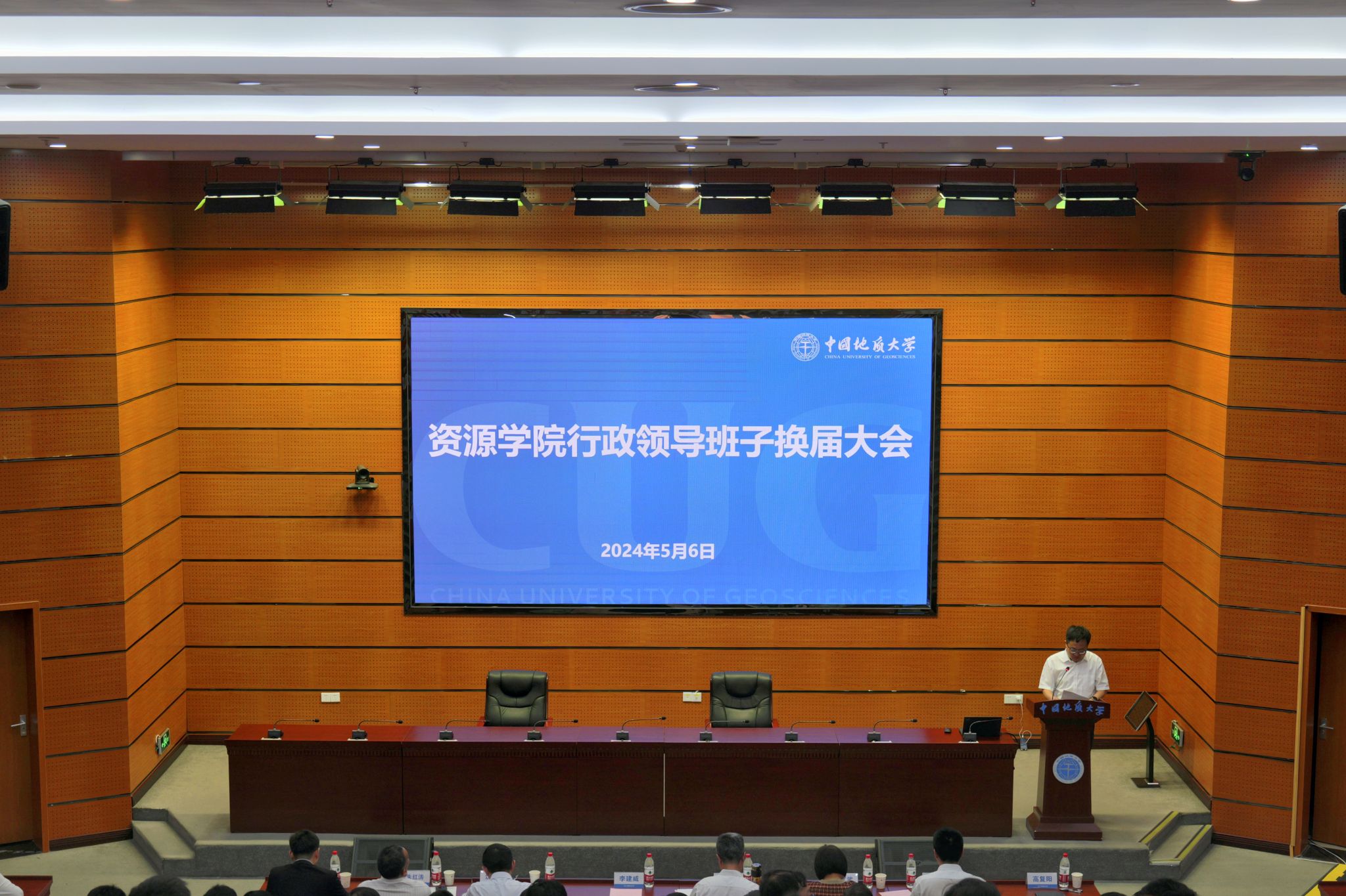 王华总结讲话。他对本届行政领导班子和老师们对学院事业发展做出的辛勤付出表示衷心的感谢,对学院近年来在党的建设、事业发展上取得的成绩给予充分肯定,并就学院未来发展提出相关要求:一是加强党的全面领导,打造一流党建工作体系。要认真贯彻落实习近平总书记关于党建思政、教育科技人才、能源资源的重要论述和指示批示,主动对标学校创建全国党建工作示范高校各项部署,创新“党建+”模式,在创新党支部设置、依托党建联建共创拓展产学研合作、党建引领园区育人建设、党员责任区设定、卓越导学团队建设、课程思政等方面持续推进,努力将党建的引领力、组织力转化为生产力、发展力;二是扎实推进“双一流”建设,全面提高拔尖创新人才培养质量和服务国家重大战略能力。要围绕服务新一轮找矿突破战略行动和关键核心领域“卡脖子”技术、地球科学领域国际知名研究型大学建设战略规划、培养资源能源领域拔尖创新人才等进一步明晰办学目标和发展规划,充分发挥A+学科的示范引领作用,高质量完成第二轮“双一流”建设目标任务,加强地质工科拔尖创新人才培养模式的探索,发挥产教融合、科教融汇的优势,开展有组织的科技攻关,大力开展弘扬“李四光精神”宣传教育,引导学生树立投身资源能源事业的志向;三是持续深化综合改革,营造一流干事创业环境。要加强法治思维,全面推进依法治院和规范办学,持之以恒抓牢基本建设,不断推进管理服务能力提质增效,坚持以党建带动,完善民主管理和民主监督机制,加强对教师和学生的思想引领和人文关怀,加强与校友的联络服务,系统加强学院宣传思想文化工作。他谈到,置身新的时代,立足新的征程,我们要坚持以习近平新时代中国特色社会主义思想为指导,不忘初心使命,勇于担当作为,全面提高人才自主培养质量,全面提高服务国家战略需求能力中,为服务和保障国家资源能源事业安全与发展做出新的更大贡献。
