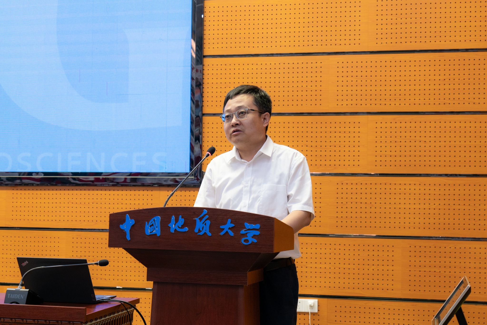 接着,严德天院长代表现任行政领导班子作了题为《踔厉奋发,砥砺前行,加快建设资源能源领域一流研究型学院》的换届工作报告。他讲到,本届行政领导班子任职期间,坚持以习近平新时代中国特色社会主义思想为指导,深入学习宣传贯彻党的十九大、二十大精神和习近平总书记关于教育科技人才、资源能源的重要论述,在学校党委、行政和学院党委的坚强领导和大力支持下,坚持“四个面向”,对标国家战略、学科前沿和社会需求,抢抓国家“双一流”建设和新一轮找矿突破战略行动等重大机遇,改革创新,追求卓越,不断提升学院的综合实力和核心竞争力,团结带领全院师生在建设资源能源领域一流研究型学院的征程上取得了重要进展:一是贯彻党的教育方针,将党的领导落实到事业发展的各方面、全过程;二是持续深化落实立德树人根本任务,地质工科人才培养模式进一步优化创新,综合育人水平不断提升;三是师资队伍建设取得显著成效,构建师德师风建设长效机制,创新高层次人才引育机制;四是基本建设不断发展进步,办学空间条件得到大幅改善,服务保障能力明显增强;五是科学研究水平持续提升,平台建设呈现新气象,国际交流与合作成效显著,科研机制实现改革创新;六是社会服务与贡献不断增强,服务行业和区域能力持续提升,对外交流合作不断拓展,特色新型智库建设取得突破。