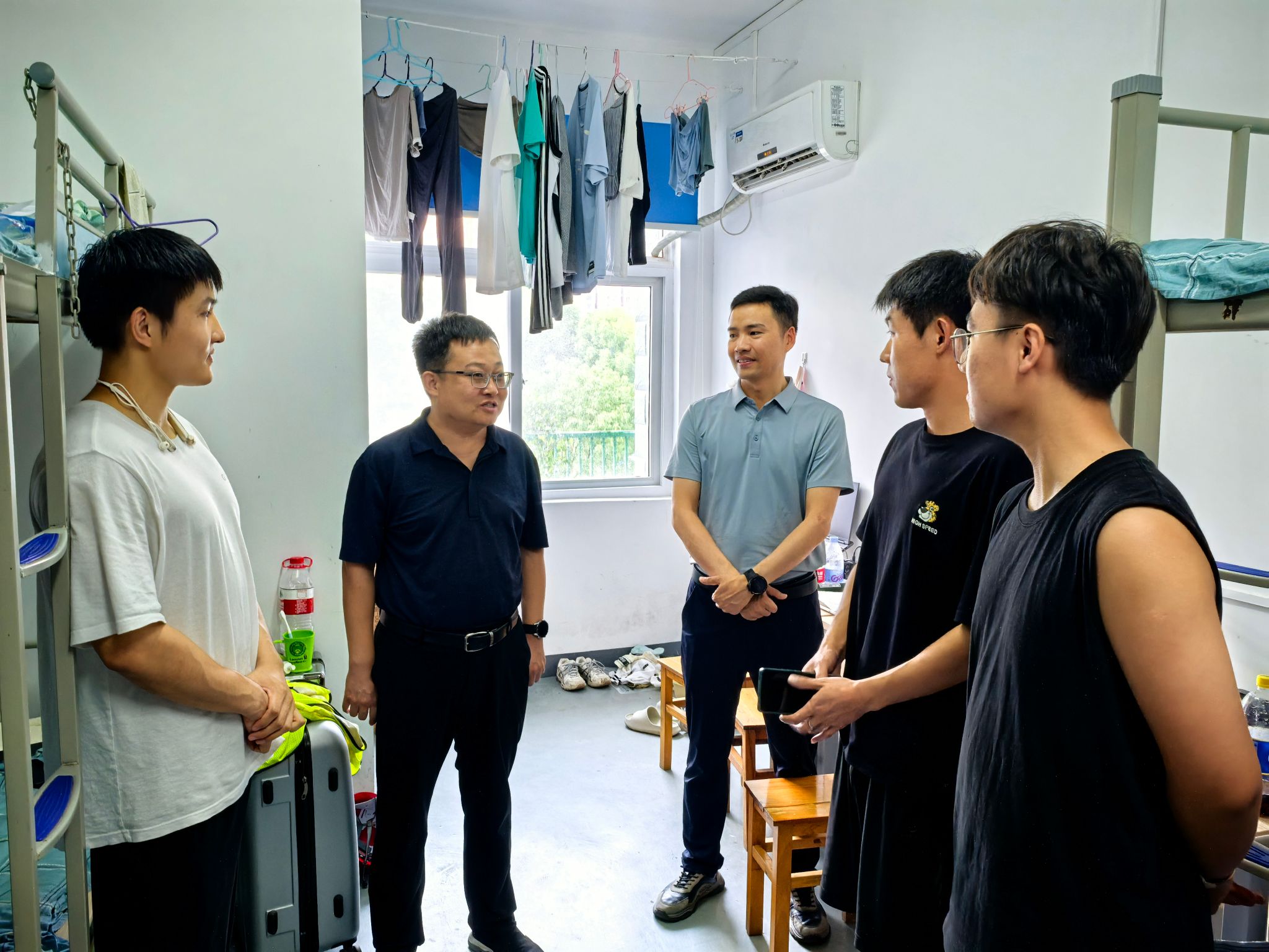 9月8日,高复阳、李占轲为师生发放慰问品,并到教师宿舍、学生宿舍看望师生。他们代表学院向参加实习的所有老师致以节日的问候,向扎实做好野外备课和实践教学的教学团队表示感谢,叮嘱教学团队把实习安全放在首位,鼓励全体教师在教学过程中增强野外实践教学的“地方味”“文化味”“思政味”,上好新时代地质专业实践教学的“大思政课”;详细询问了同学们在实习期间的成长与收获,勉励大家要弘扬地质工作者优良传统,坚定地质报国志向,保持勤学好问、刻苦钻研的劲头,努力成长为国家资源能源领域优秀创新人才。