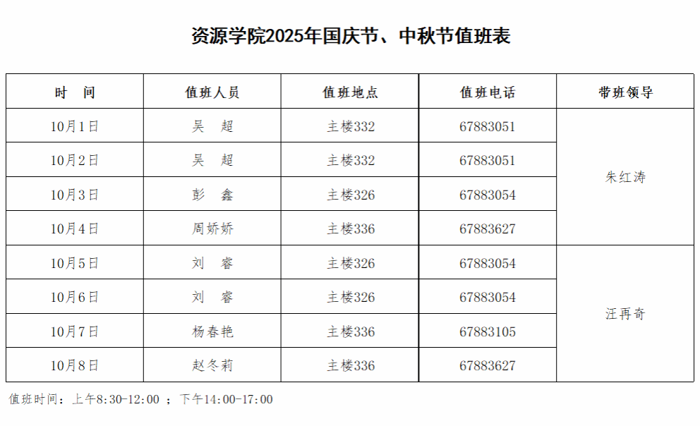 古天乐太阳集团城2025年国庆节、中秋节值班表