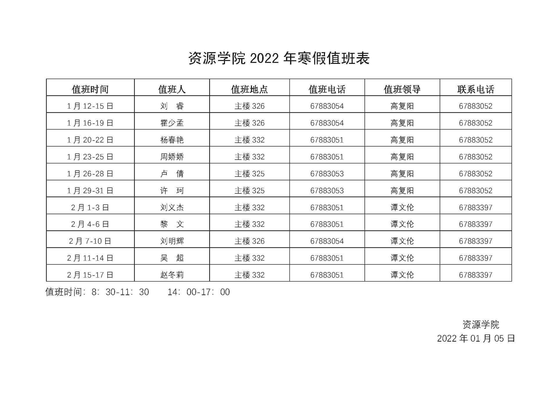 古天乐太阳集团城2022年寒假值班表