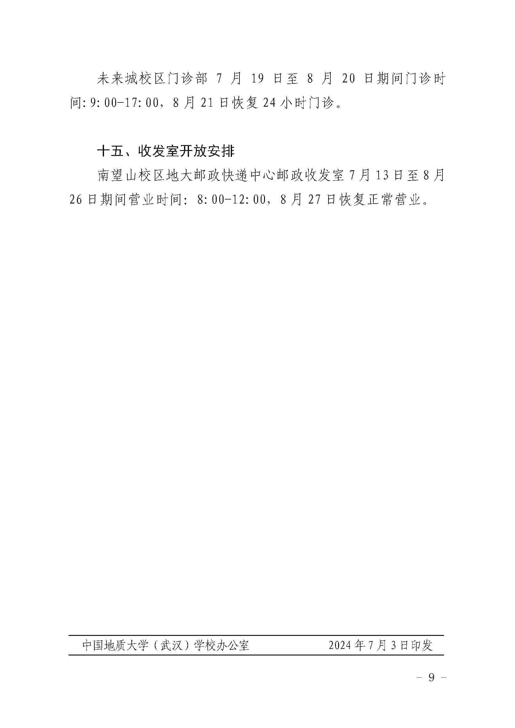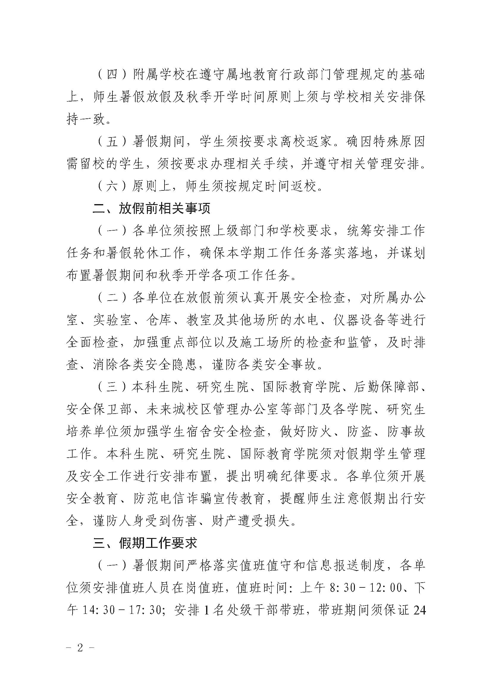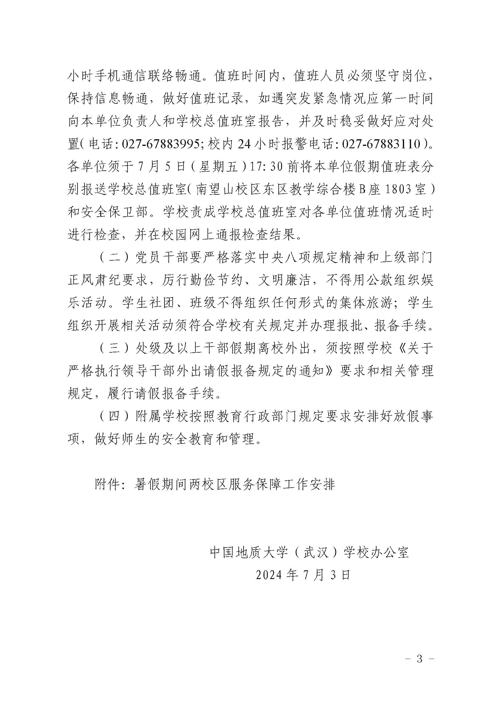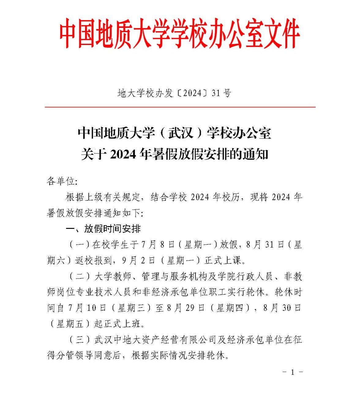 中国地质大学(武汉)关于2024年暑假放假安排的通知