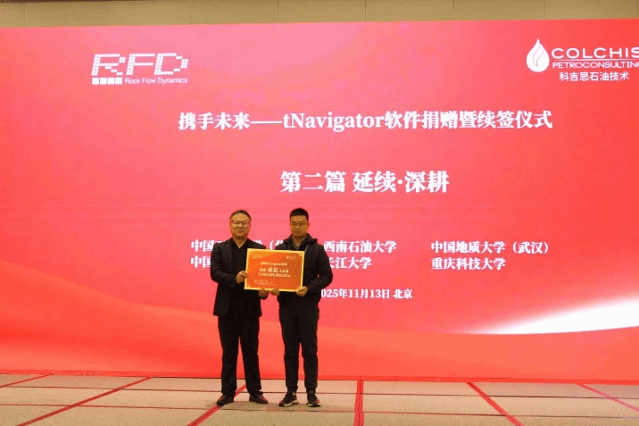 2025年11月13日,应科吉思石油技术咨询(北京)有限公司邀请,古天乐太阳集团城学术副院长杨峰和石油工程系教师雷霆出席了科吉思石油技术公司和俄罗斯Rock Flow Dynamics (RFD)公司联合举办的《2025精细油气藏高效勘探开发学术交流会暨tNavigator技术研讨会》暨tNavigator 软件捐赠仪式。
