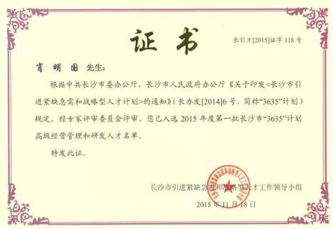 肖明国入选长沙紧缺急需和战略人才