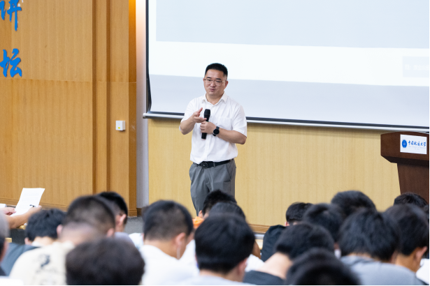 张立中从地质行业的职业发展特性出发,以自身在紫金矿业集团工作中的“三破三立”经历切入,鼓励同学们始终传承地大人艰苦奋斗的优良作风,在扎根基层、投身一线中实现职业价值、夯实发展基础。他以紫金矿山发展历程为例,介绍了新时代矿业发展布局和趋势。他讲到,资源能源安全是实现中华民族伟大复兴的重要保障,地质行业是大有可为的“恒阳”产业,同学们可以在地矿行业发展中找到人生成长机会和价值实现的舞台;人生的发展离不开对社会责任的承担,地矿行业的接续发展需要一代代地质人、资源人的担当作为。他表示,学业是学生成才之本、发展之基,在大学阶段,同学们要静下心来做学问,打下扎实的专业基础,成就择业发展中的牢固基石。