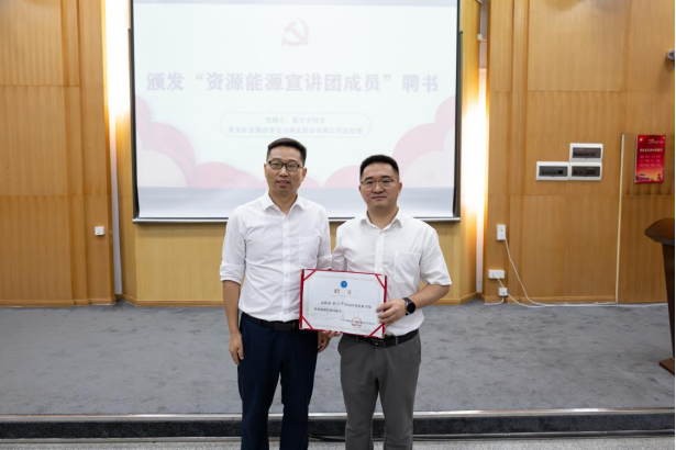 谭文伦为张立中颁发资源能源宣讲团聘书并作总结讲话。他表示,一代代资源人扎根行业,砥砺奋斗,为国家资源事业发展做出了卓越贡献,为母校和学院赢得了良好声誉,向他们表示敬意。他讲到,通过校友专题报告,深刻表明投身地质行业具有广阔发展前景,西部、基层、行业都是青年施展才干的舞台,同学们要坚定行业自信,锤炼专业本领,提升综合素质,立志为国家资源事业发展贡献力量!(审核霍少孟)
