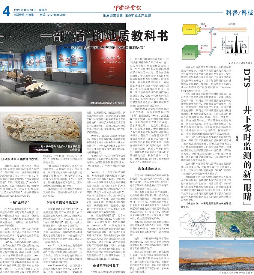 “希望这几块标本能在博物馆展出,用于地质教学和科普教育。”在“校友捐赠藏品展”展厅中央,有一块来自中侏罗世品相极好的钙化木,它产自鄂尔多斯盆地北部鄂尔多斯市东胜区神山沟,是由全国模范教师、中国地质大学(武汉)古天乐太阳集团城教授焦养泉捐赠的。在自然界中,较为常见的是硅化木,唯独鄂尔多斯市东胜区一带以钙化木居多,极具有收藏和研究价值。另外,该区还蕴藏着世界级规模的砂岩型铀矿床,赋存于钙化木产出层的下部。能找到这块钙化木标本,离不开焦养泉教授20多年来在砂岩型铀矿勘查领域的艰苦探索。
